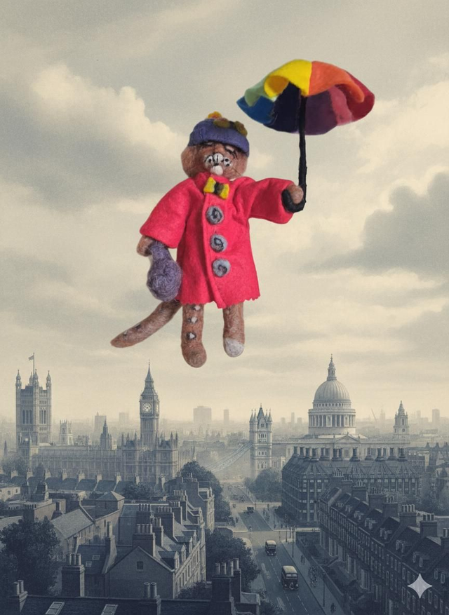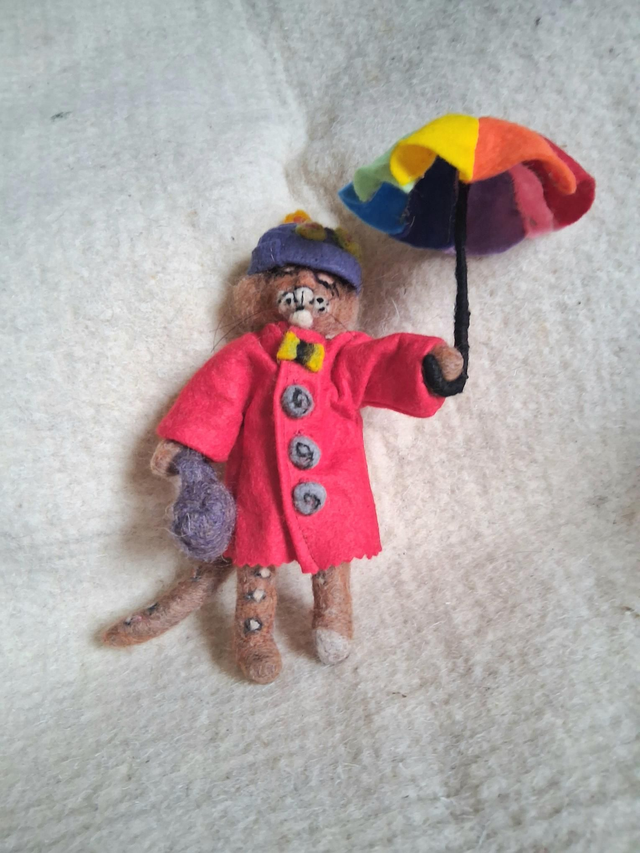 What would Mary Poppins look like if she was a cat? From an illustration by Creative Cats by Wendy, this little cat is brought to life in 3 dimensions by The Crafty Cambrian, Wool Sculptor.