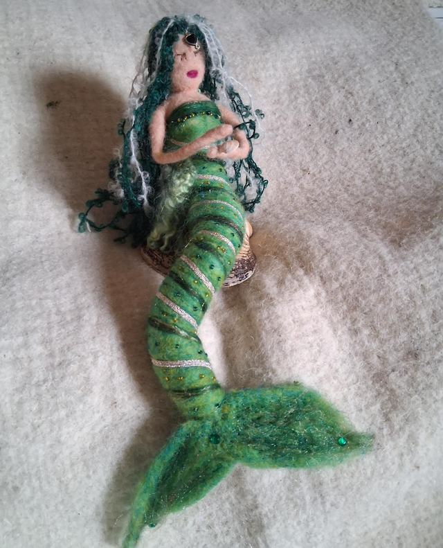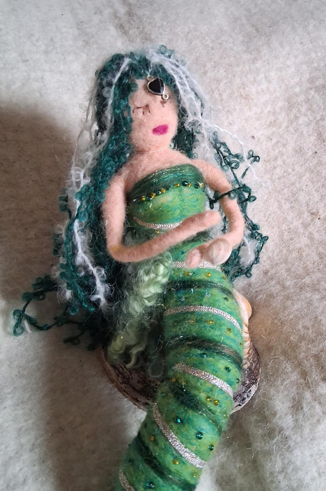 Handmade Needle Felt Mermaid Doll - Seafoam Siren