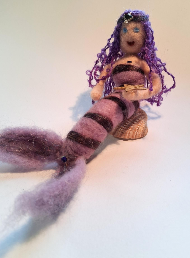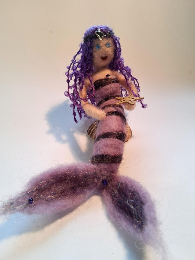 Bring the magic of the sea into your home with these enchanting handmade needle felt mermaid dolls. Each mermaid is carefully crafted with soft wool fibers, seashell bases, and sparkling accents, making them a unique piece of ocean-inspired art. Available in shimmering blue, green, and purple, these cute felted mermaids feature flowing yarn hair, jeweled details, and sea creature charms like turtles and starfish. Perfect as coastal décor, gifts for mermaid lovers, or charming collectibles, these one-of-a-kind felt mermaid figurines add a touch of fantasy and under-the-sea wonder to any space.